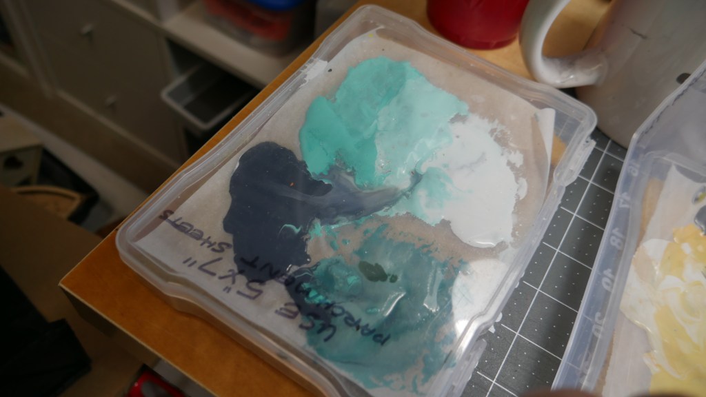 The DIY wet palette is also doing well, although I have an idea for improving it as my first iteration’s sponge layer is not very flat and causes the paint to prematurely mix on my parchment paper. You could also just buy a wet palette. Check out my Tools and Materials page for my affiliate links.