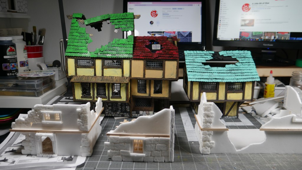 Hi. So. It’s that time of year. I took my annual Flu shot, but this time I had the notion to include not one, but two OTHER vaccinations at the same time. Three total. Apparently, they allow you to take up to four if you want or need it. In the past, I have gotten multiples on one day and was fine the next. However, this time was a doozy. Do people still say that? “Doozy”? That was this past Wednesday. It is Saturday, going on Sunday for me here and I am just feel “back to normal” so to speak. I was able to work on my interpretation of the Mordheim Starter Box Terrain while mainly in a daze from the pain killers (i.e. Acetaminophen).