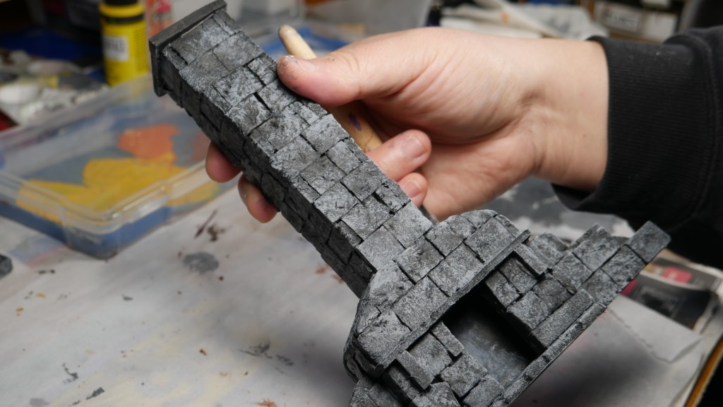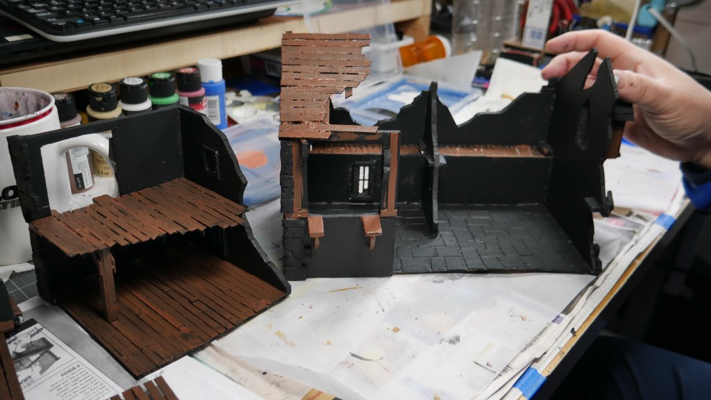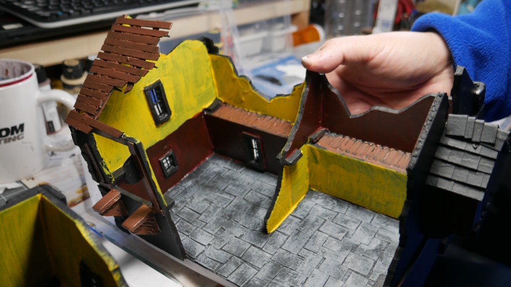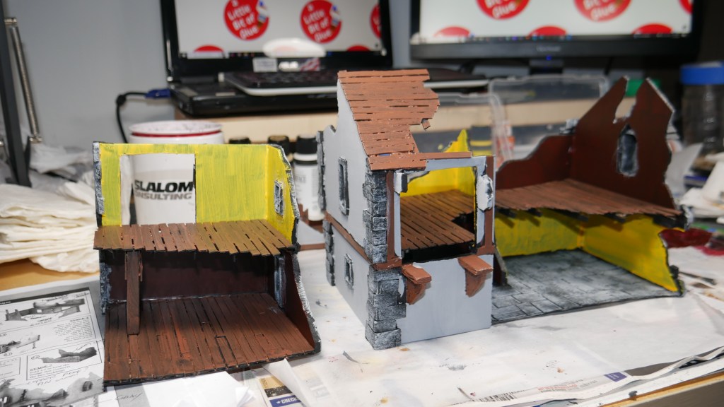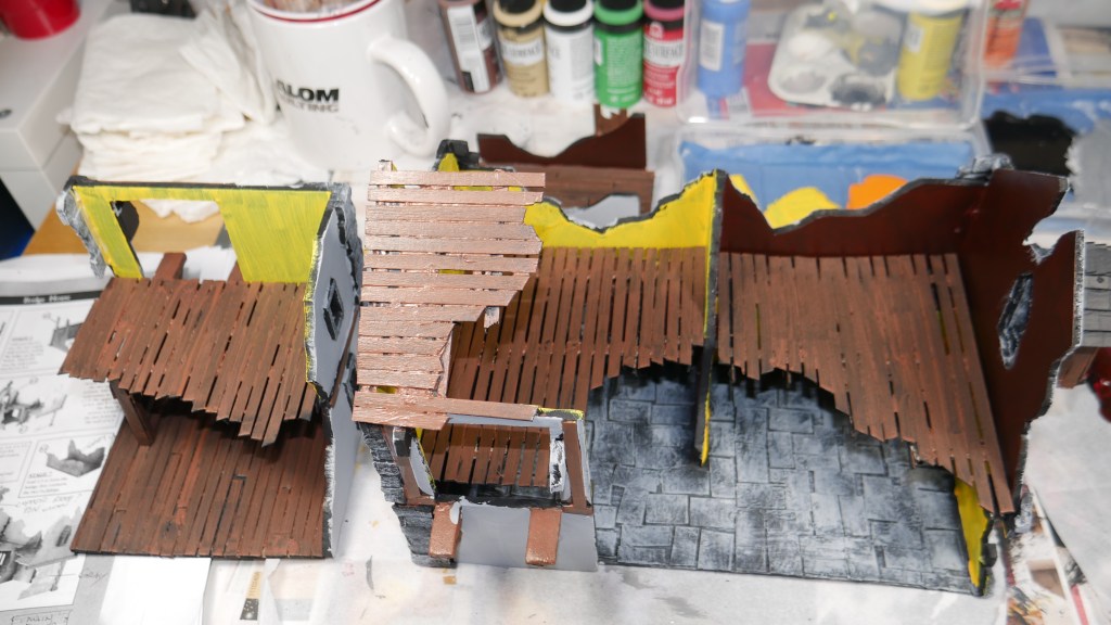 Hi. What can I say? Life somehow manages to pull me away. But, I am back with an update. I made more progress on the Mordheim Starter Box Terrain (my take on this iconic set). I managed to put some paint on the Bridge House, the Chimney and Monument. Hooray!