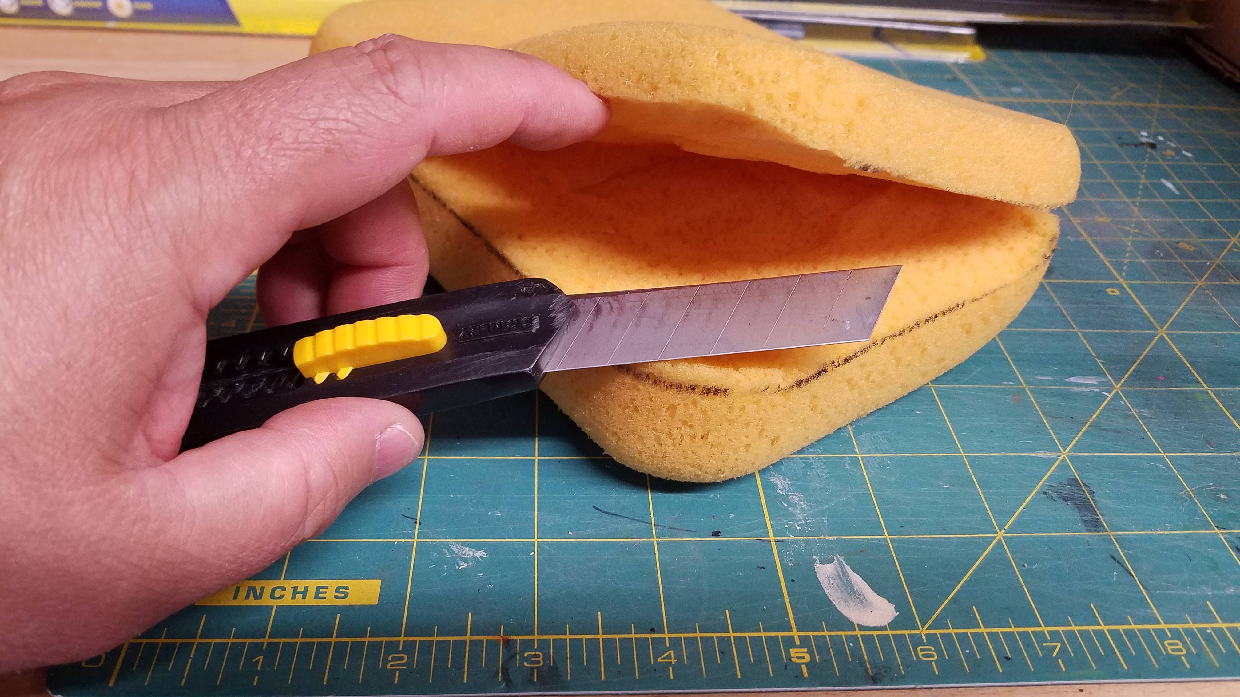 - Cut a sponge to fit in the container